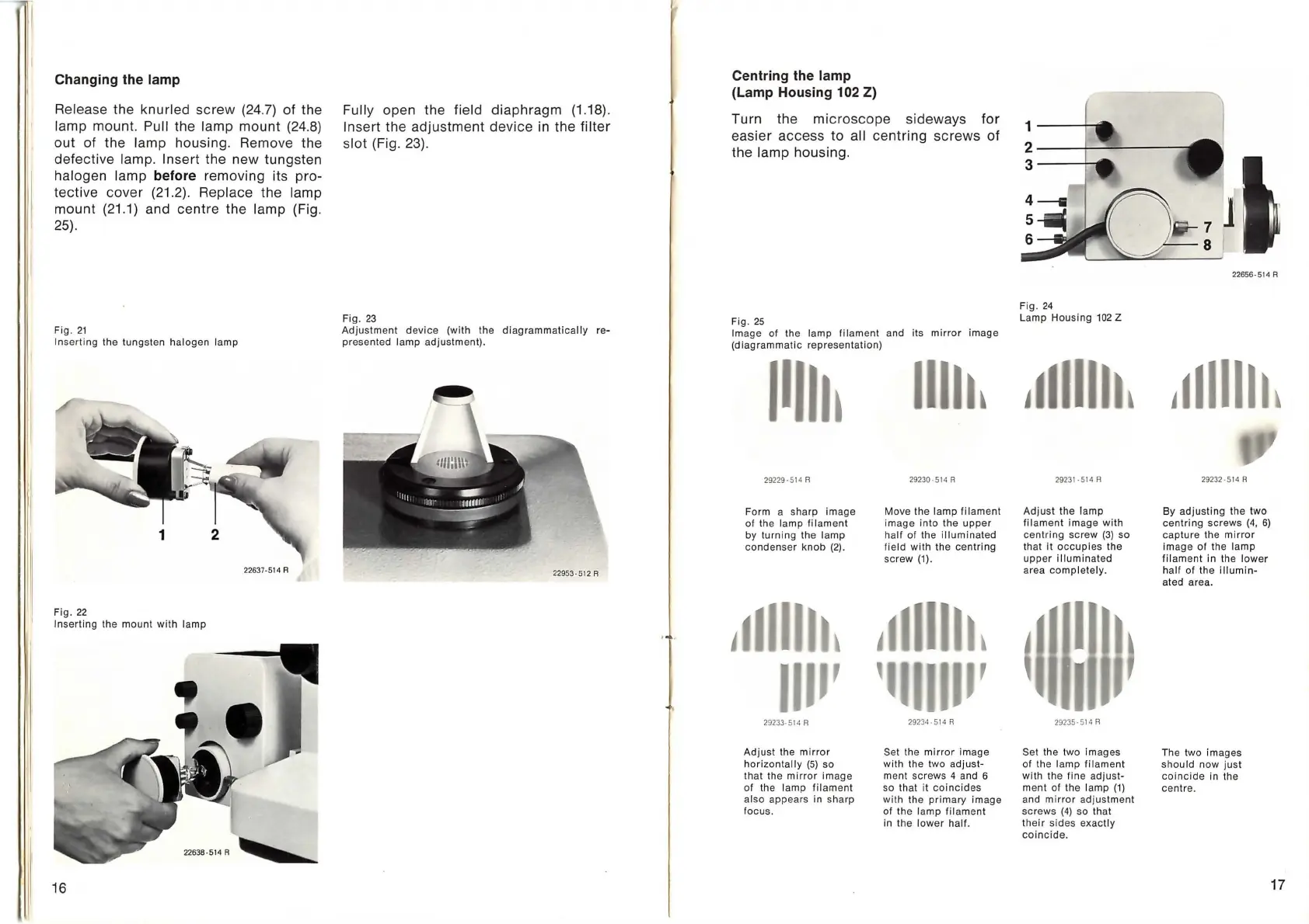 LEITZ DIALUX 20 - Changing the Lamp; Centring the Lamp