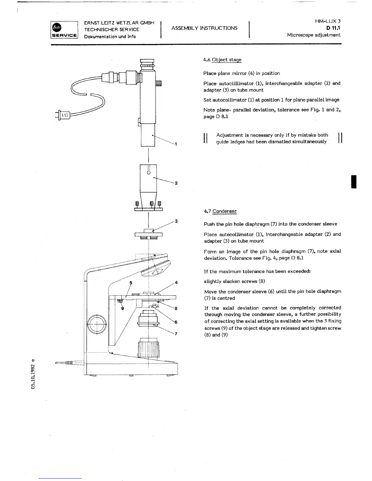 LEITZ HM-LUX 3 - Object Stage Adjustment; Condenser Adjustment