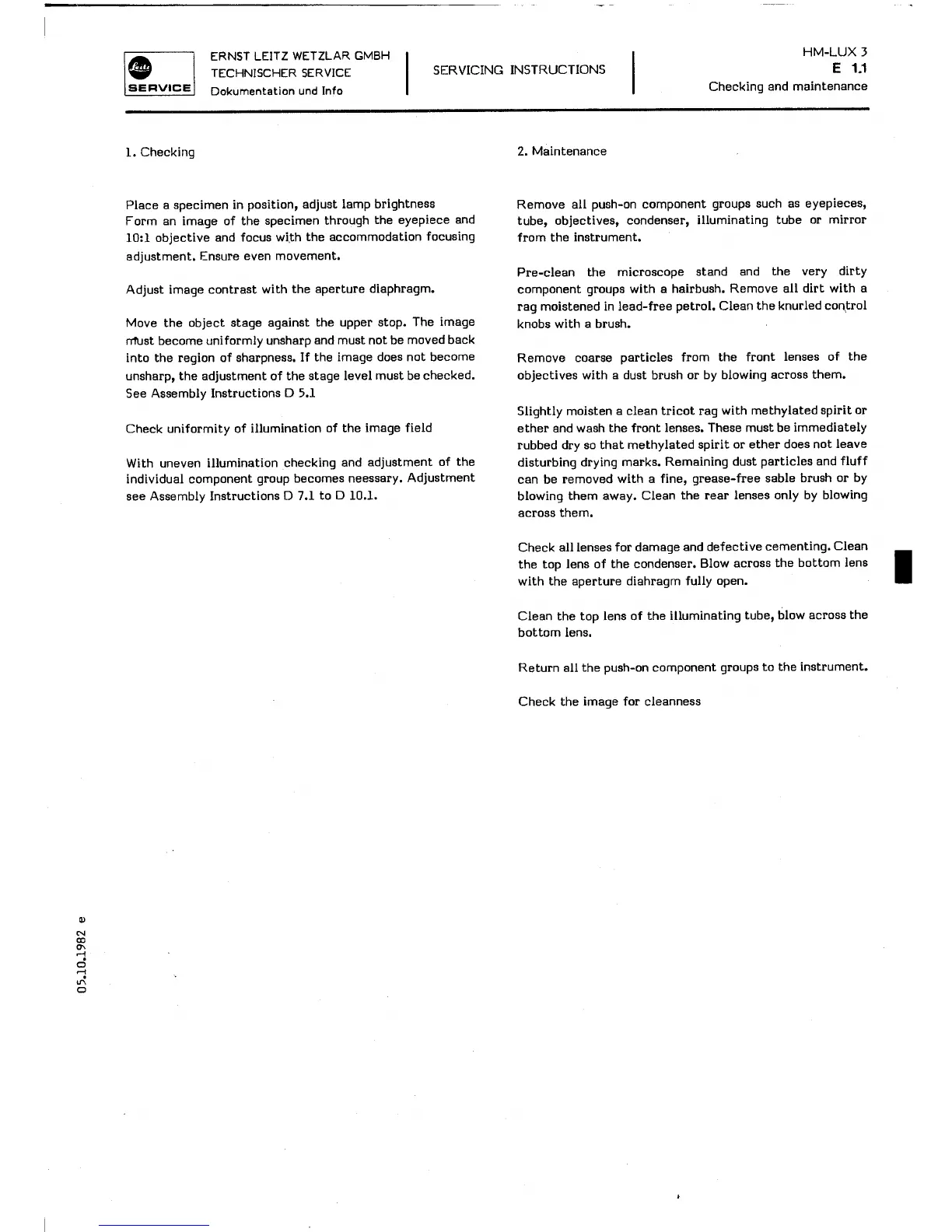 LEITZ HM-LUX 3 - Servicing Instructions; Checking and maintenance