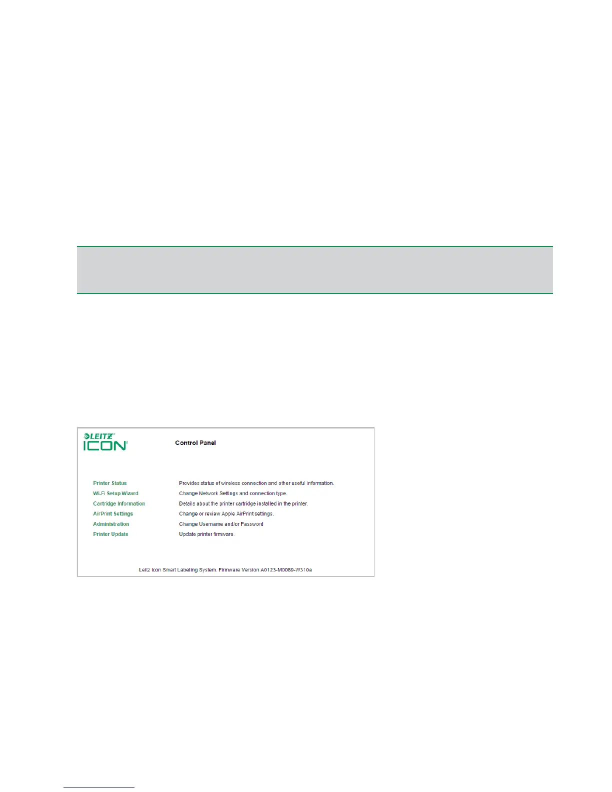 You can use the Leitz Icon Control Panel to connect your printer to your wireless network, view and change your
