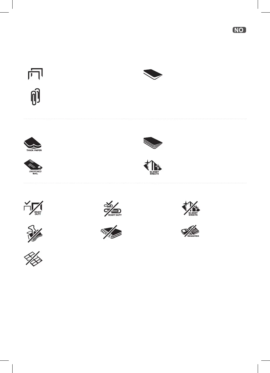 • Papir med binders, binders maks. 25 mm fra hjørnet