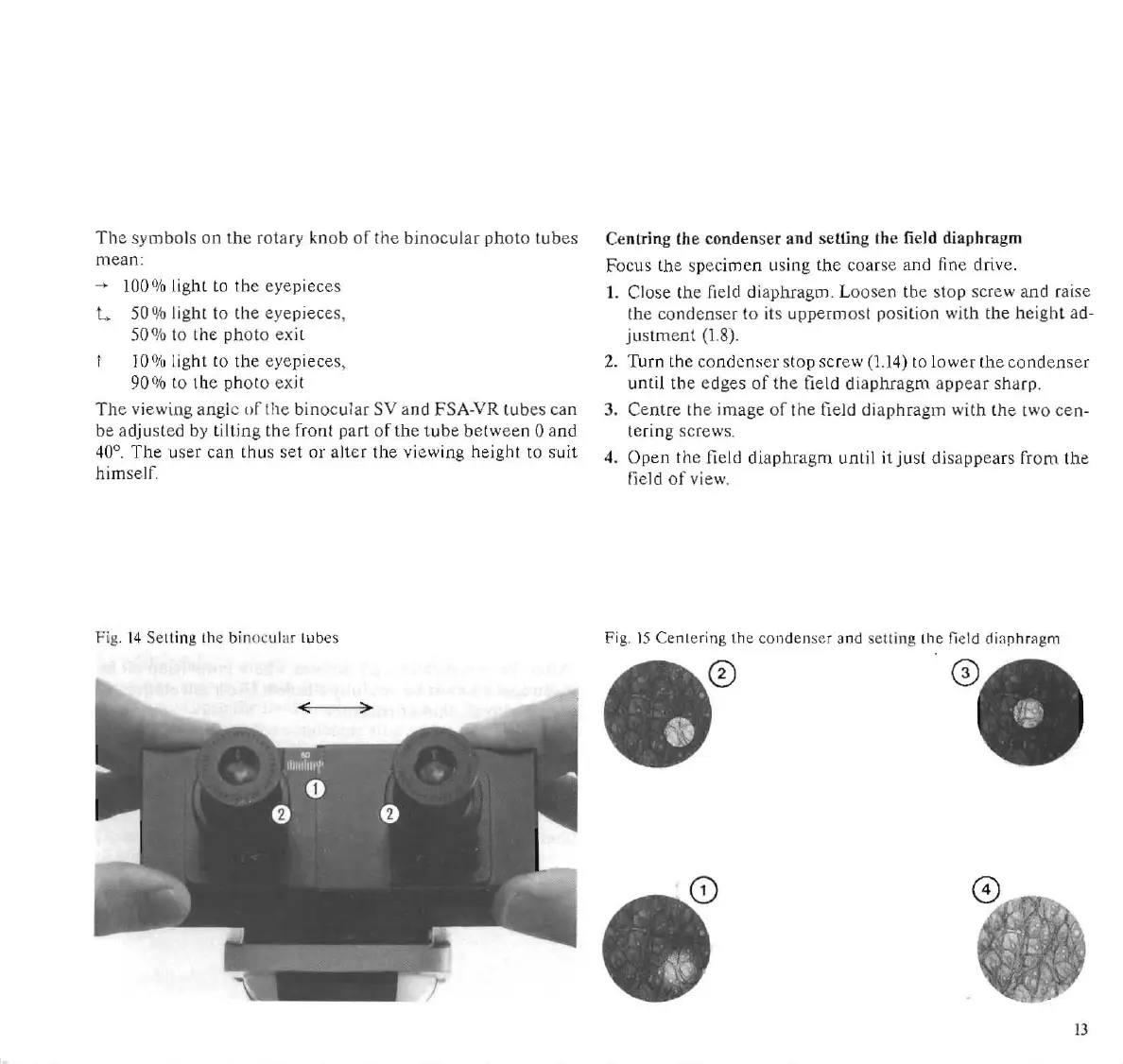 LEITZ LABORLUX S - Centering the Condenser and Setting the Field Diaphragm