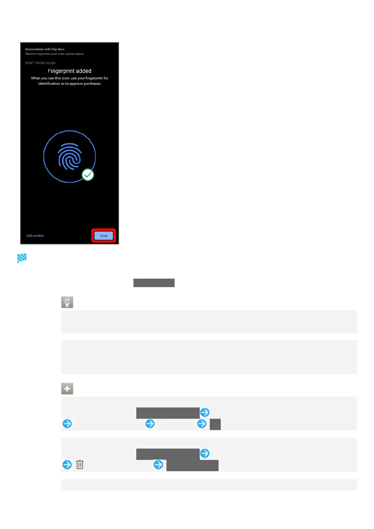 In fingerprint settings, Register fingerprint Enter pattern / lock no. (PIN) / password