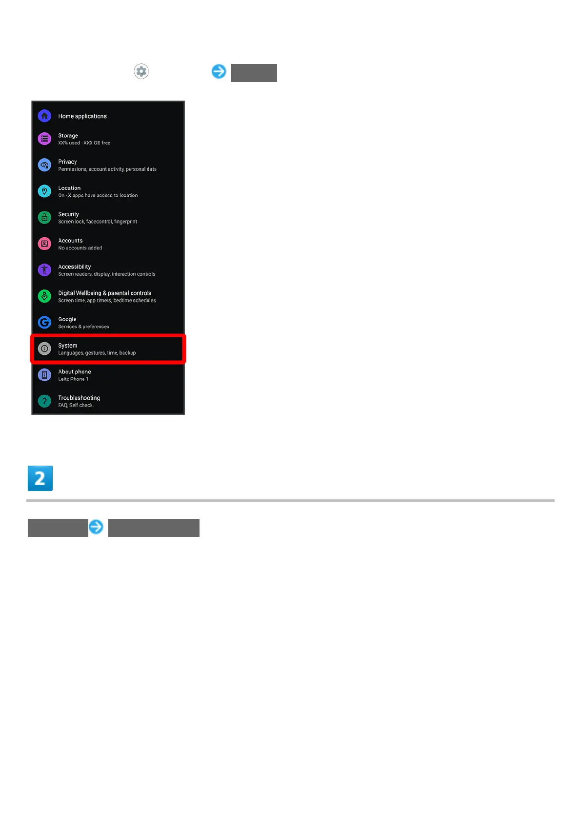In Home Screen, (Settings) System