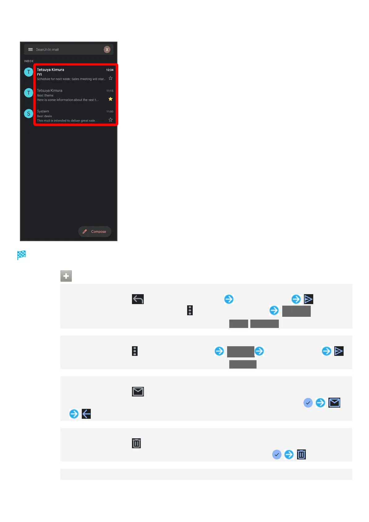 Alternatively, in message list, Tap icon for message to delete ( ) .