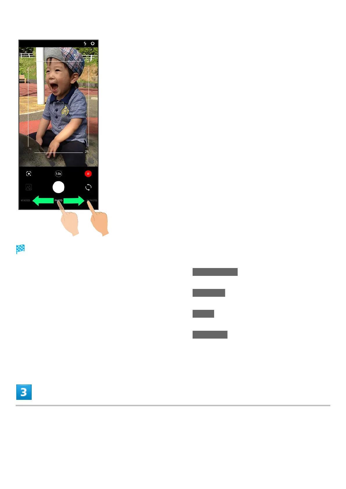 Drag shooting mode at bottom to left/right and select M.PHOTO to change the setting manually