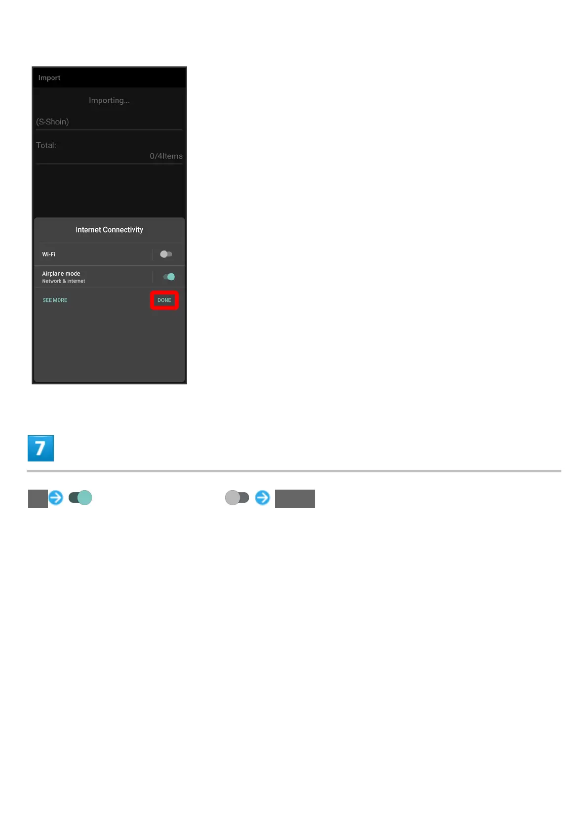 OK for "Airplane mode" ( ) DONE