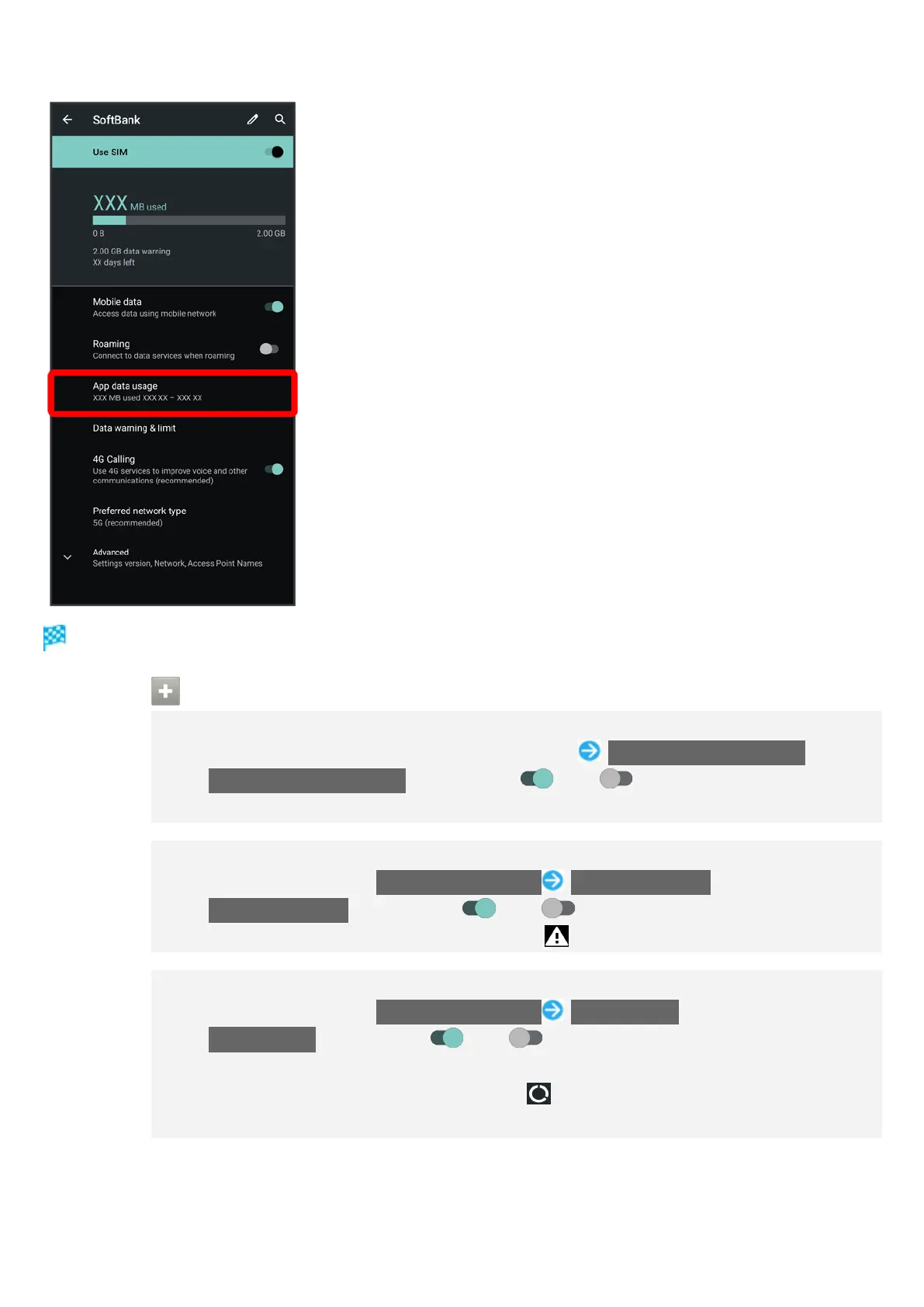 Tap Set data warning to toggle on ( )/off ( ).