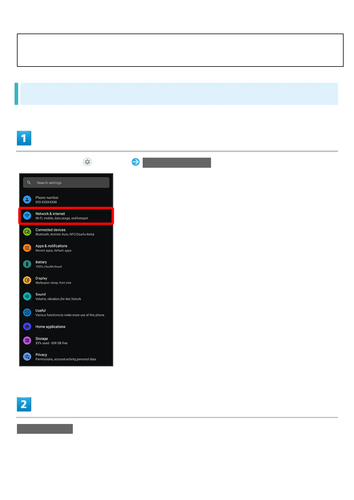 In Home Screen, (Settings) Network & internet