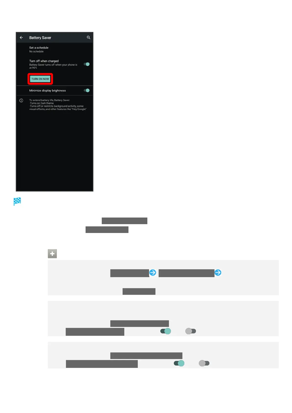 To disable Battery Saver, Tap TURN OFF NOW.