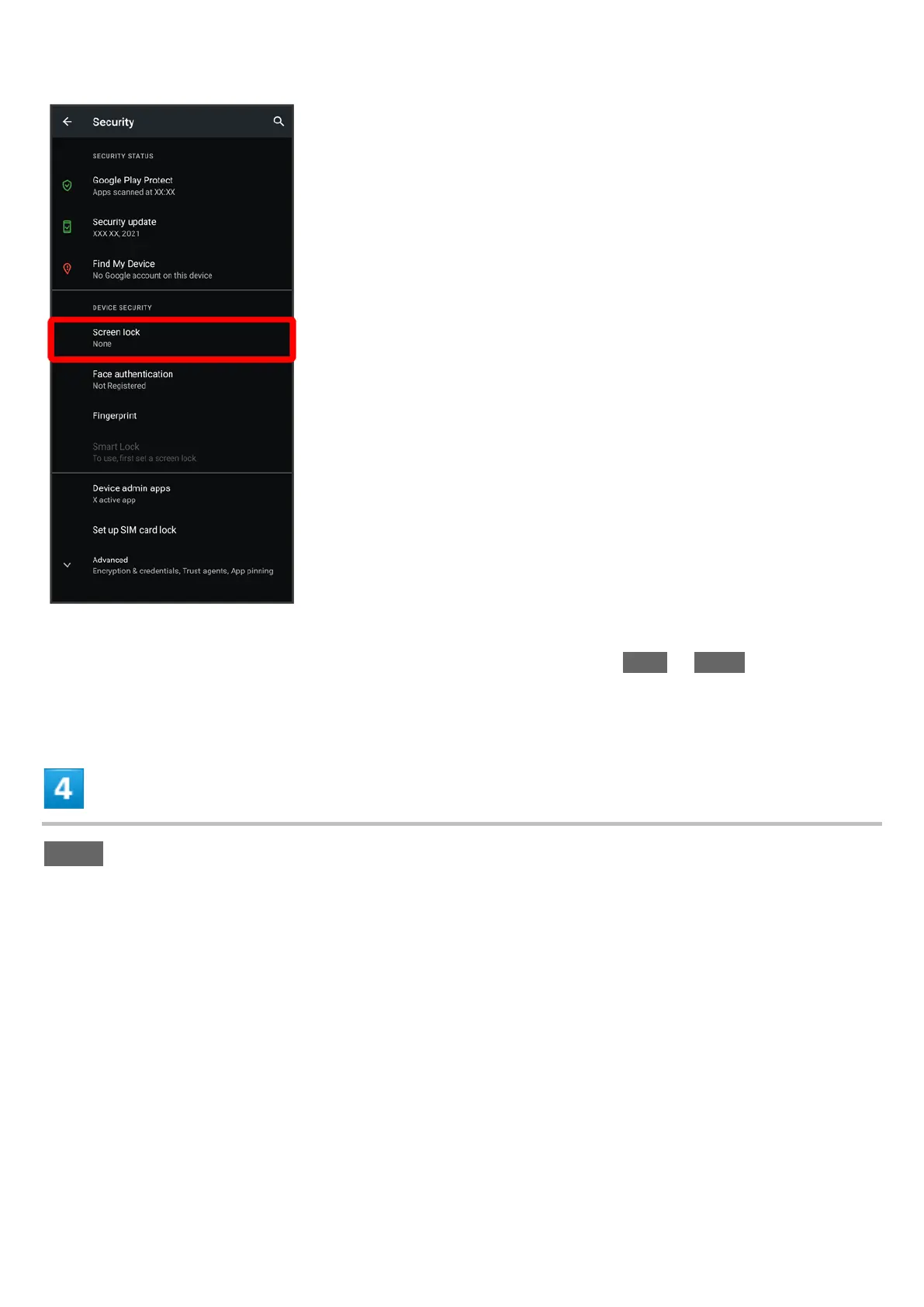 If method for unlocking screen before change is setting other than None or Swipe, first unlock