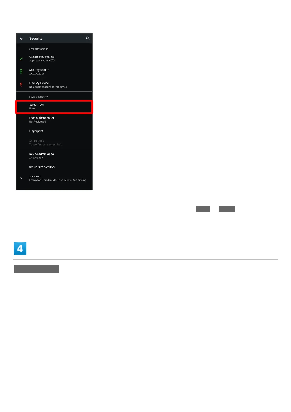 If method for unlocking screen before change is setting other than None or Swipe, first unlock
