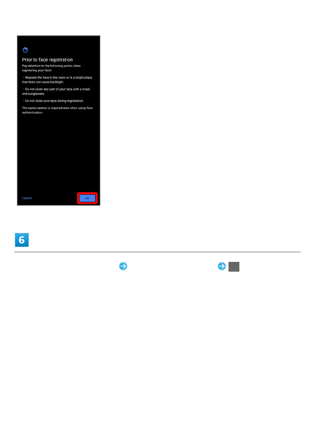 Align face with onscreen guides Tap when to unlock screen OK