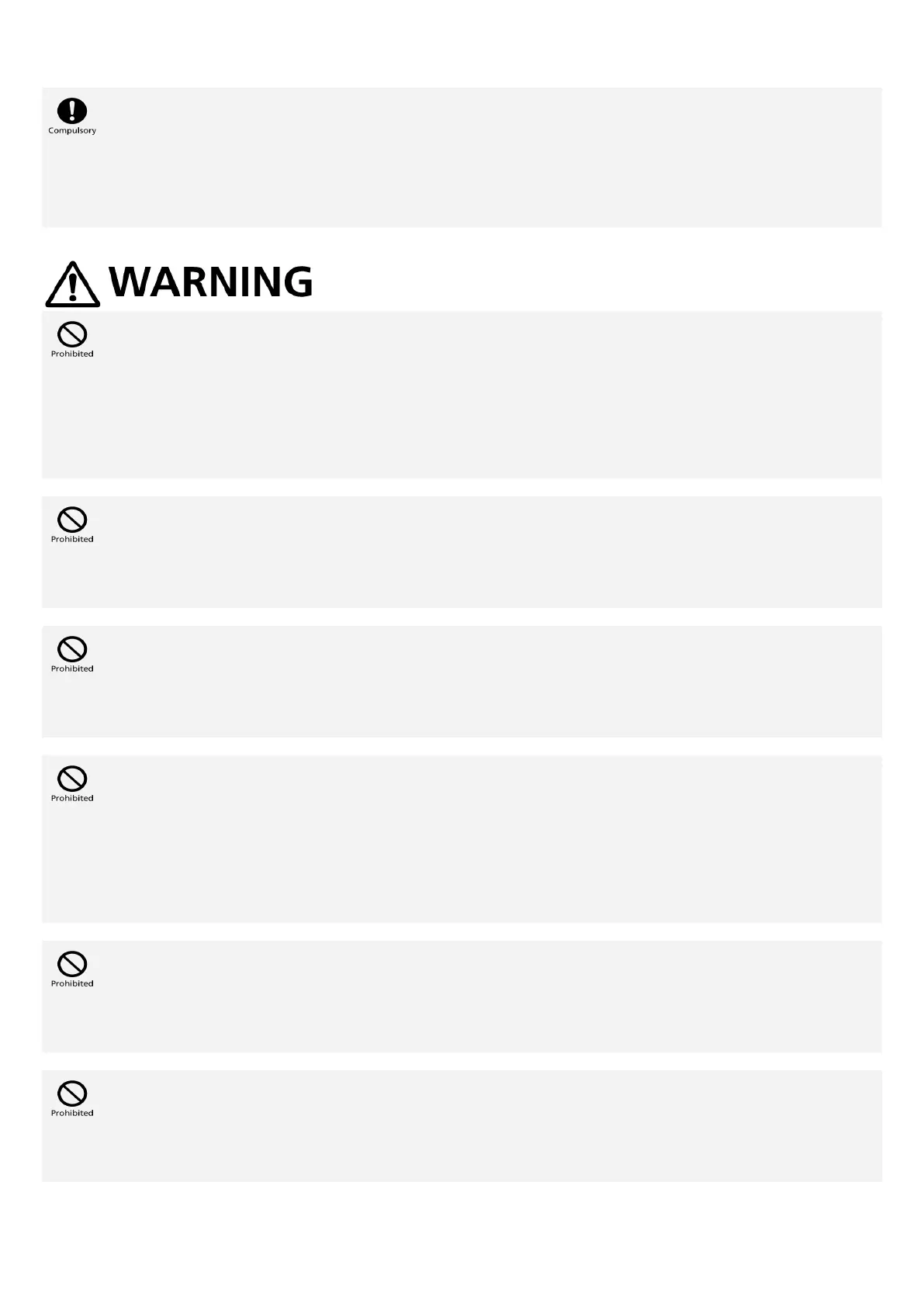 May cause fire, burns, injury, electric shock, etc.