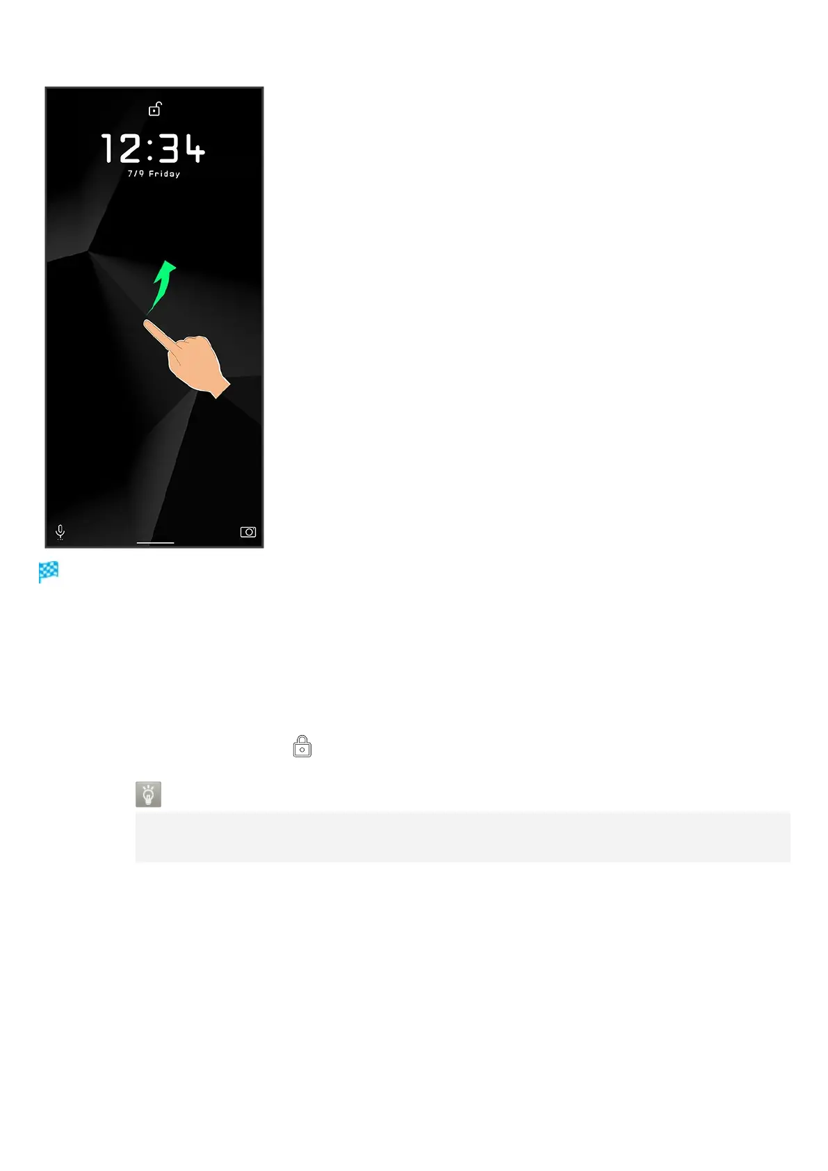 After Flicking screen up when is displayed, enter pattern / lock no. (PIN) / password to unlock.