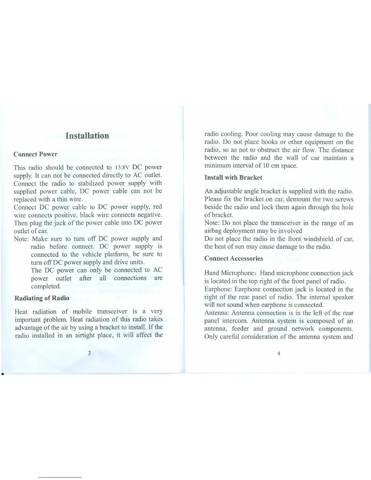 radio before connect. DC power supply is