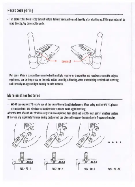 LEKATO WS-70 - Advanced Features and Debugging; Resetting Code Pairing; Multi-System Usage