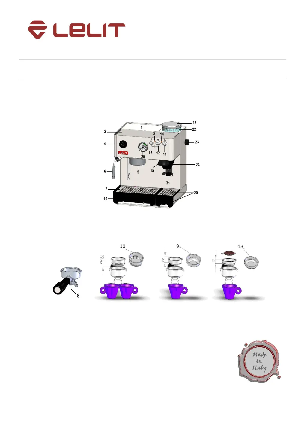 If your Lelit Coffee Maker isn't producing any coffee during the coffee cycle, make sure there's enough water in the tank and that the steam switch is off. A too finely ground coffee, too much coffee in the filter, or coffee pressed too firmly can also be the cause. In this case, use a coarser grind, put less coffee in the filter, and press the coffee more gently. If the shower plate is obstructed, contact the nearest service center.
