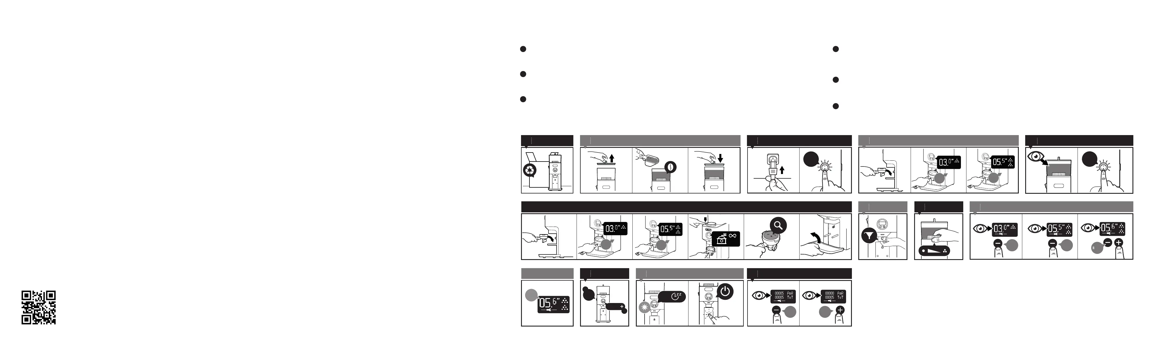 E. Moulez le café F. Réglez le bec G. Réglez la mouture H. Réglez les doses I. Réinitialisez les paramètres J. Économie d’énergie.