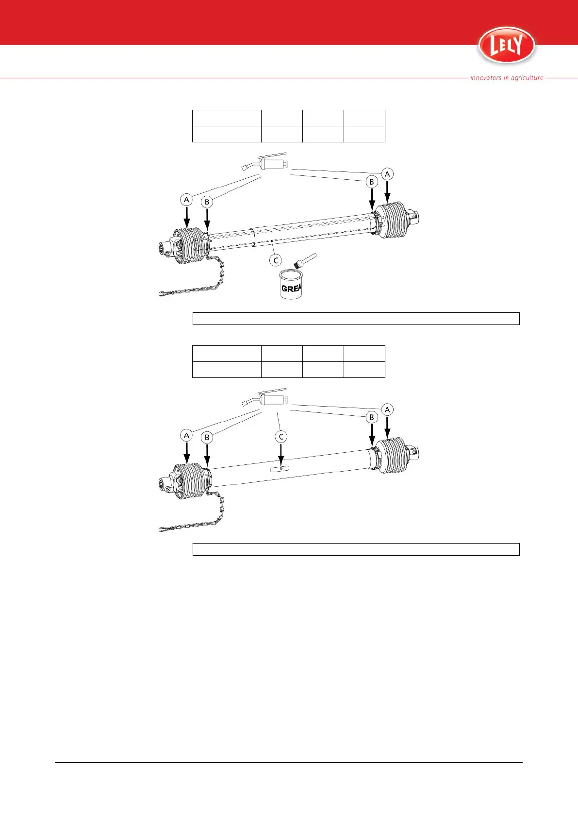 A. Grease nipple - B. Guard bearing - C.Profiled tube