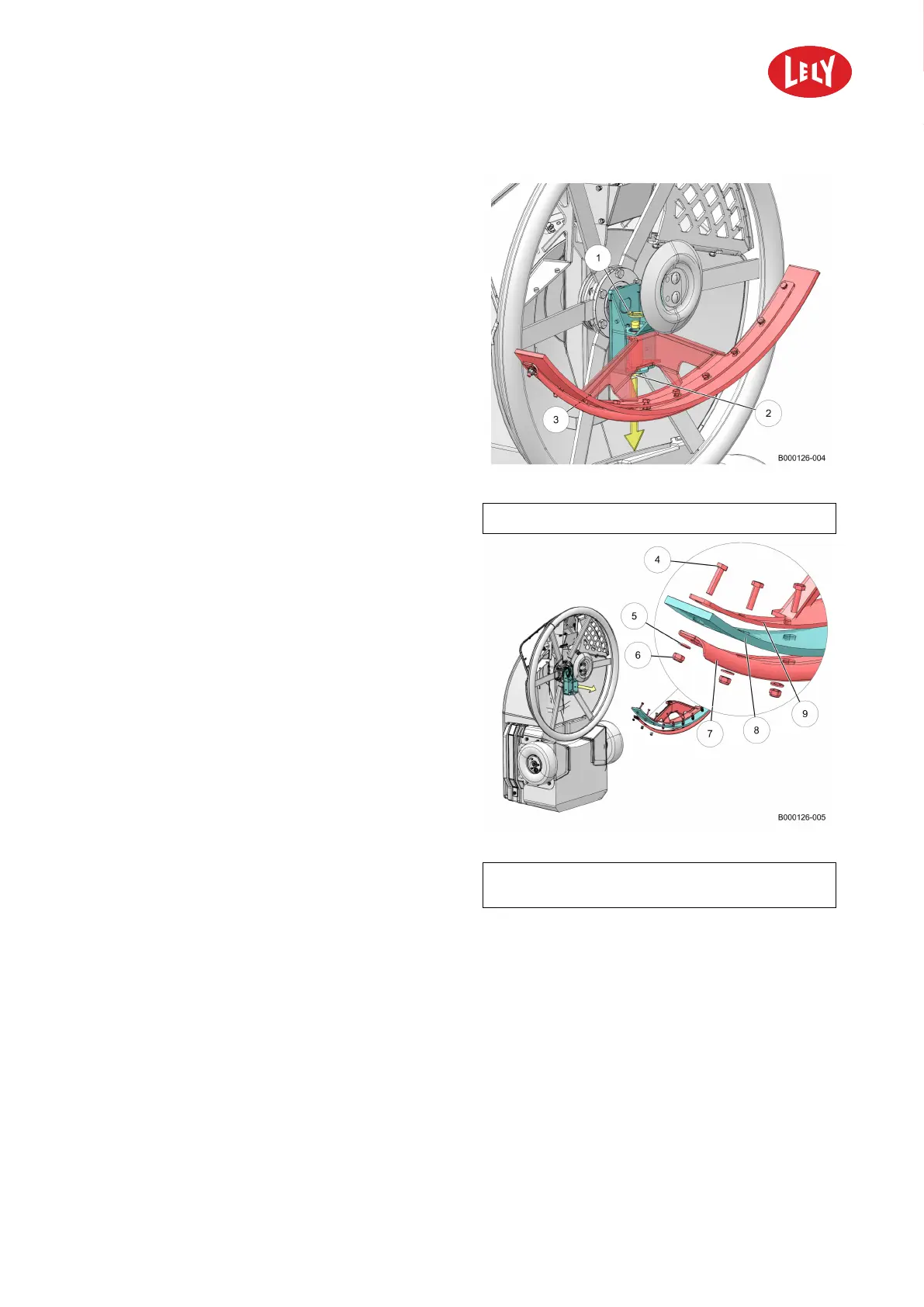 1. Loosely install the new manure scraper (8) (see figure 45 on page 6-9) between the fixation plate (9)