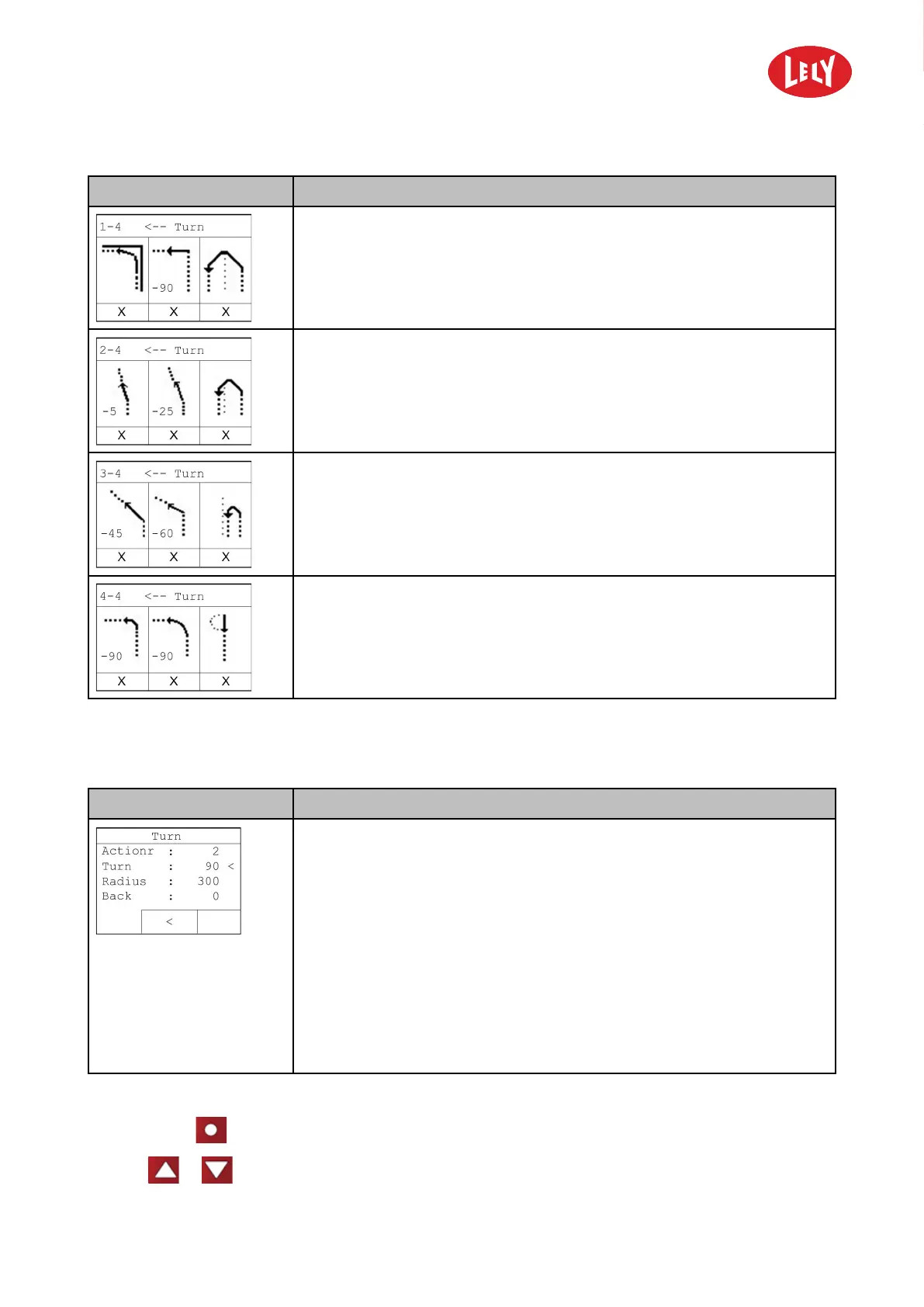 • Turn: Angle of the turn, positive value (+) = turn right, negative value (-)