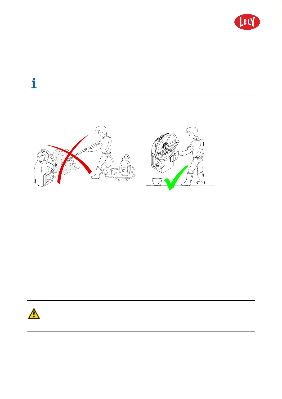 To prevent damage of the electronics, do not clean the manure scraper with a high