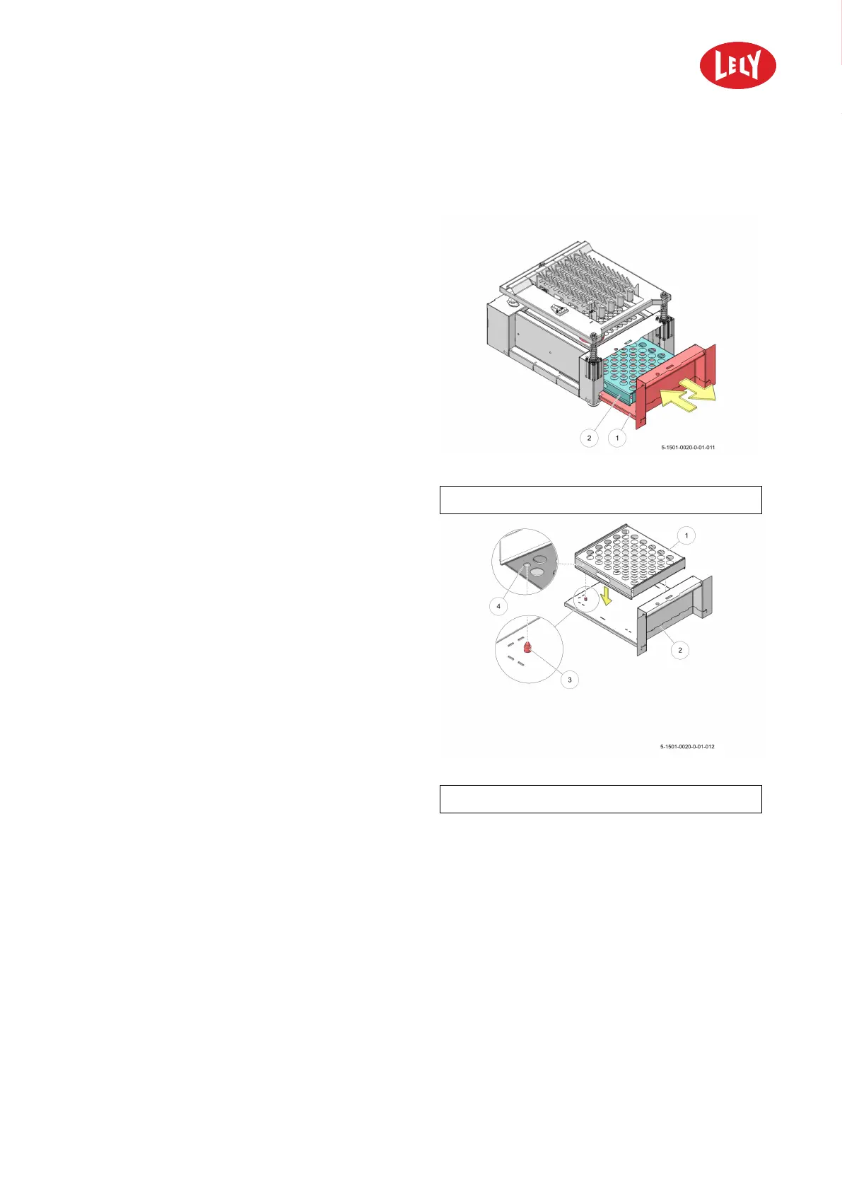 3. Install the sample rack (1) on the tray (2).