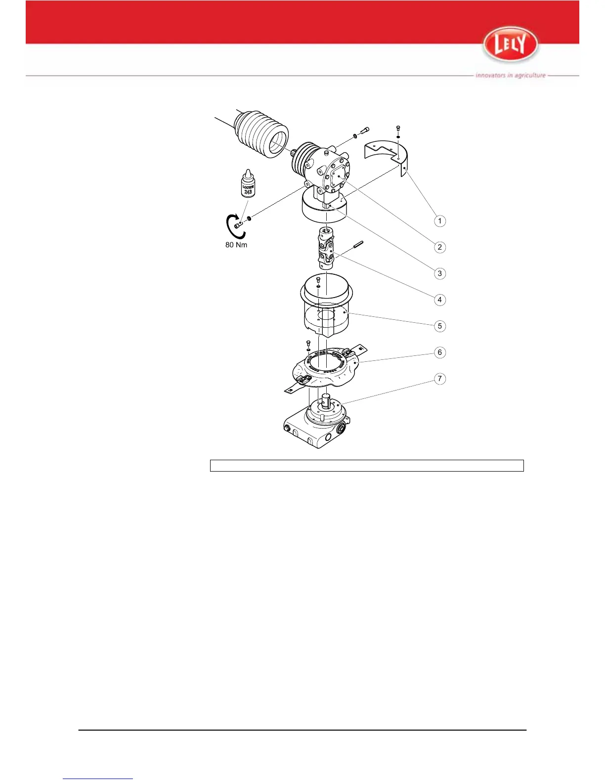 1. Cover - 2. Gearbox - 3. Stub axle - 4. Yoke - 5. Hat - 6. Mower disc - 7. Bearing housing