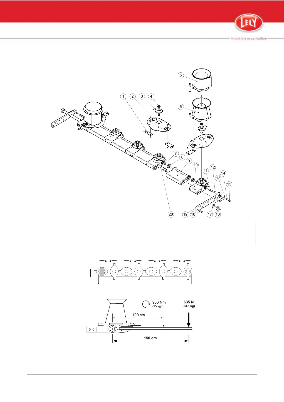 - 12. Locking ring - 13. Securing plate - 14. Washer - 15. Bolt M10 x20 - 16. M30 nut - 17.