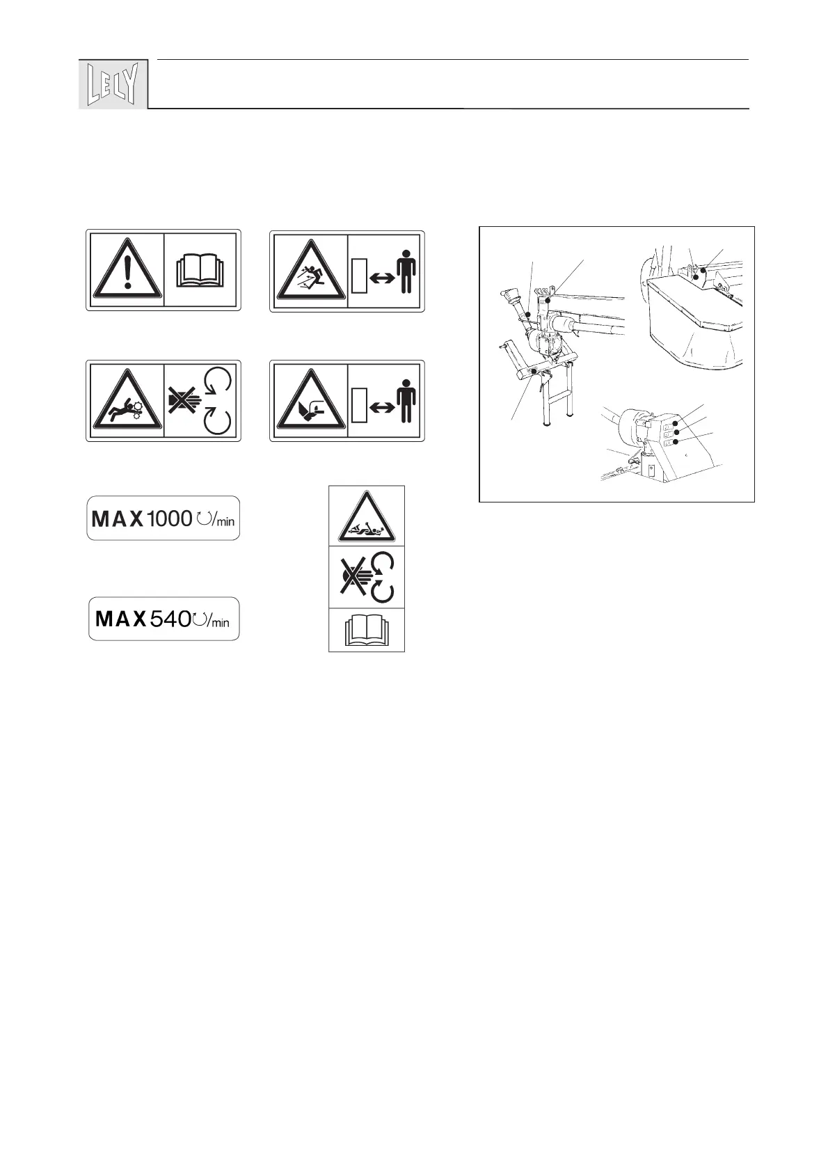 - Controleer of alle waarschuwingsstickers onbeschadigd op