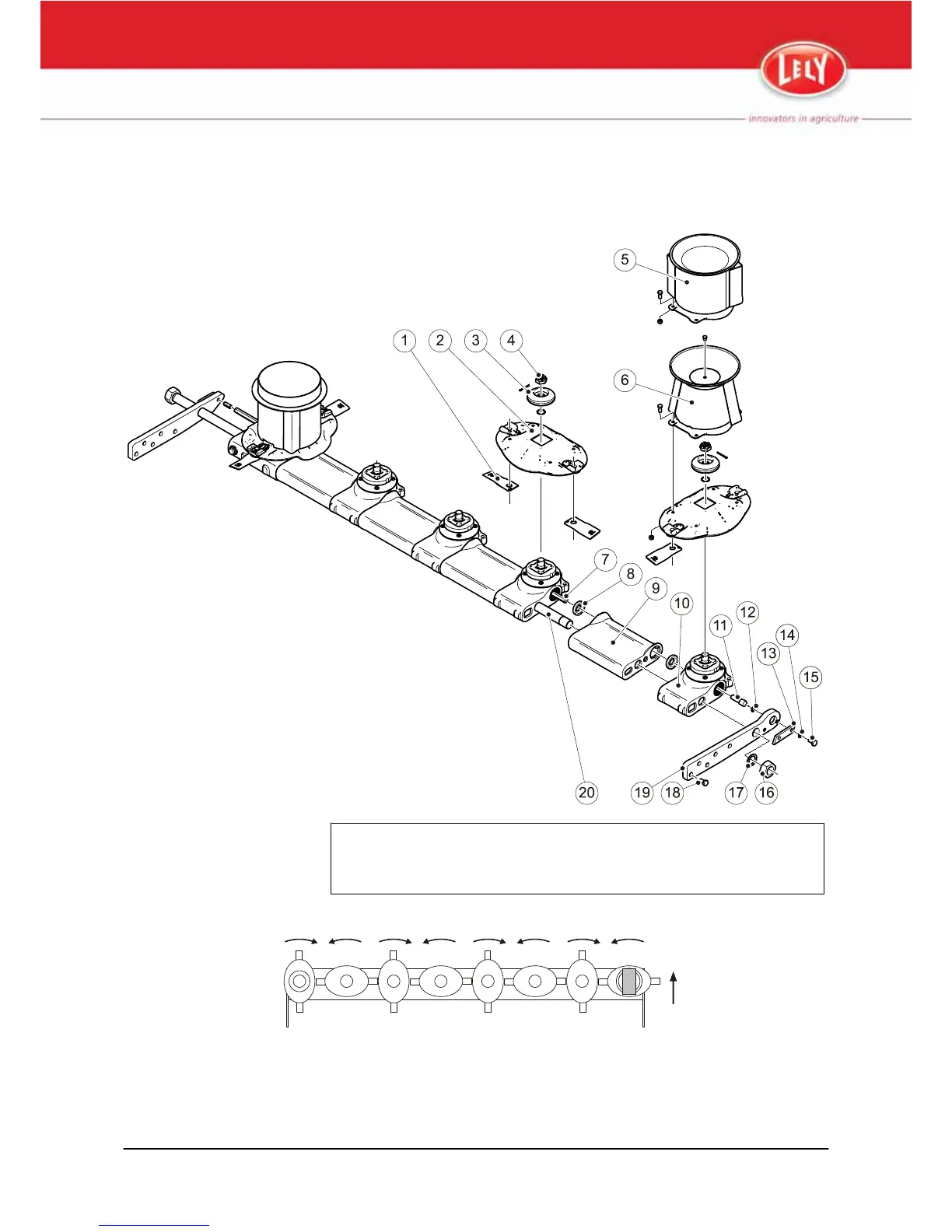 1.Mower knive - 2. Mower disc - 3.Pressure piece - 4 Castellated nut - 5. Hat - 6. Hat - 7. Drive