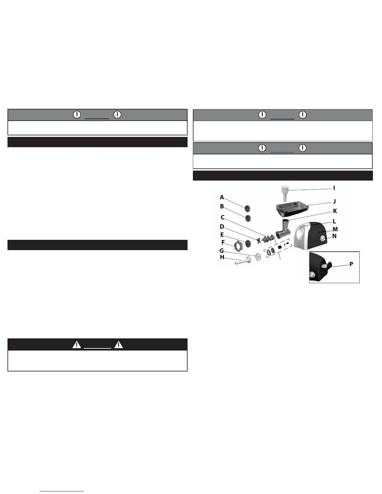 Before cleaning, assembling or disassembling meat grinder, make sure the