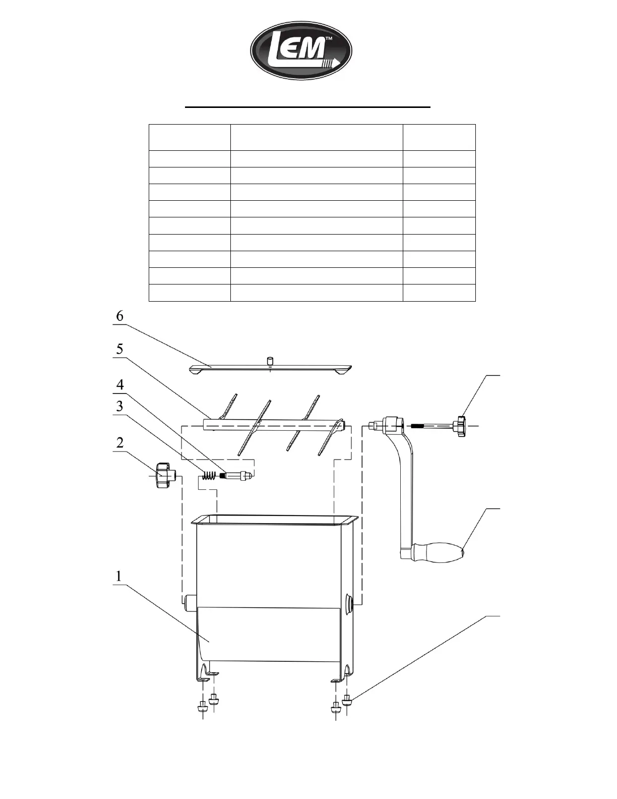 #654 17lb Stainless Steel Meat Mixer Parts List