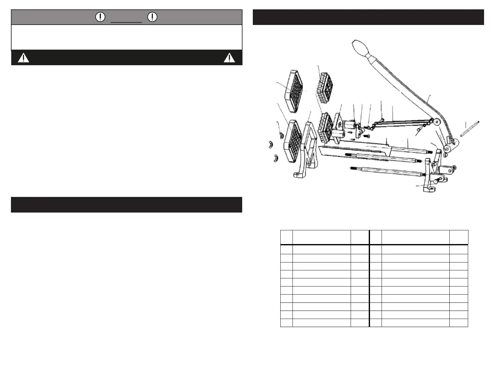 the nylock nut onto each bolt tightly. Press firmly down on the French Fry Cutter to create suction between the surface and the