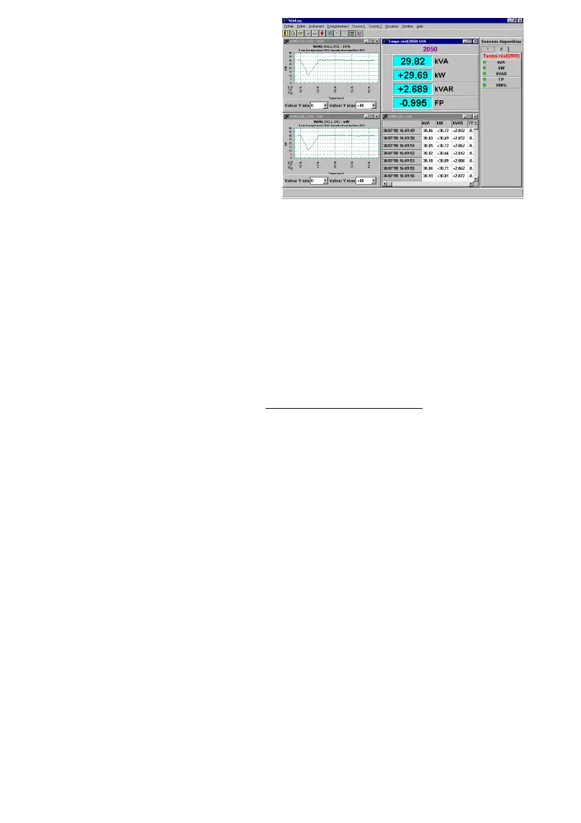 copie de l’écran de la pince, tableau, graphe.