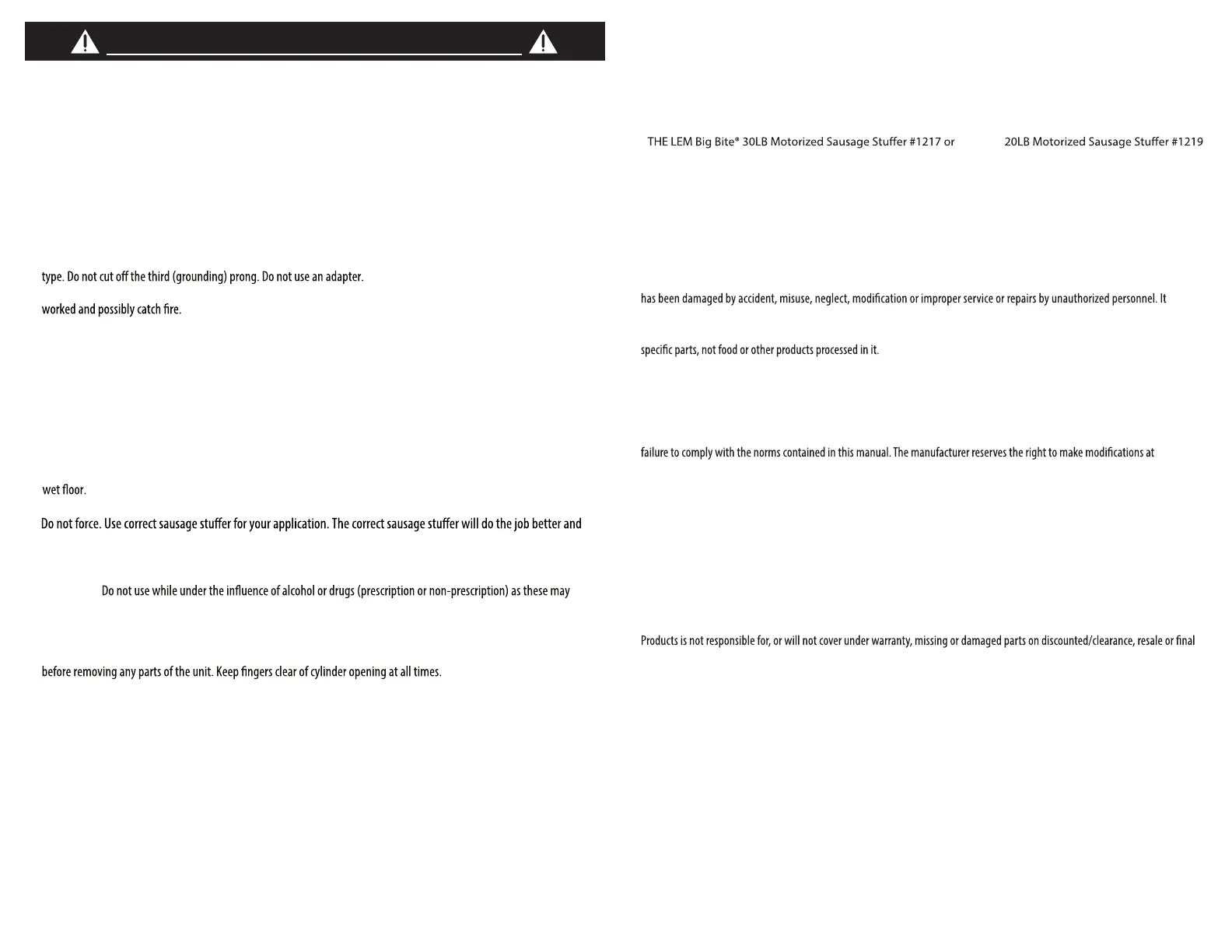 LEM PRODUCTS MERCHANDISE RETURN POLICY WARRANTY SERVICE: To obtain service under terms of this warranty, please