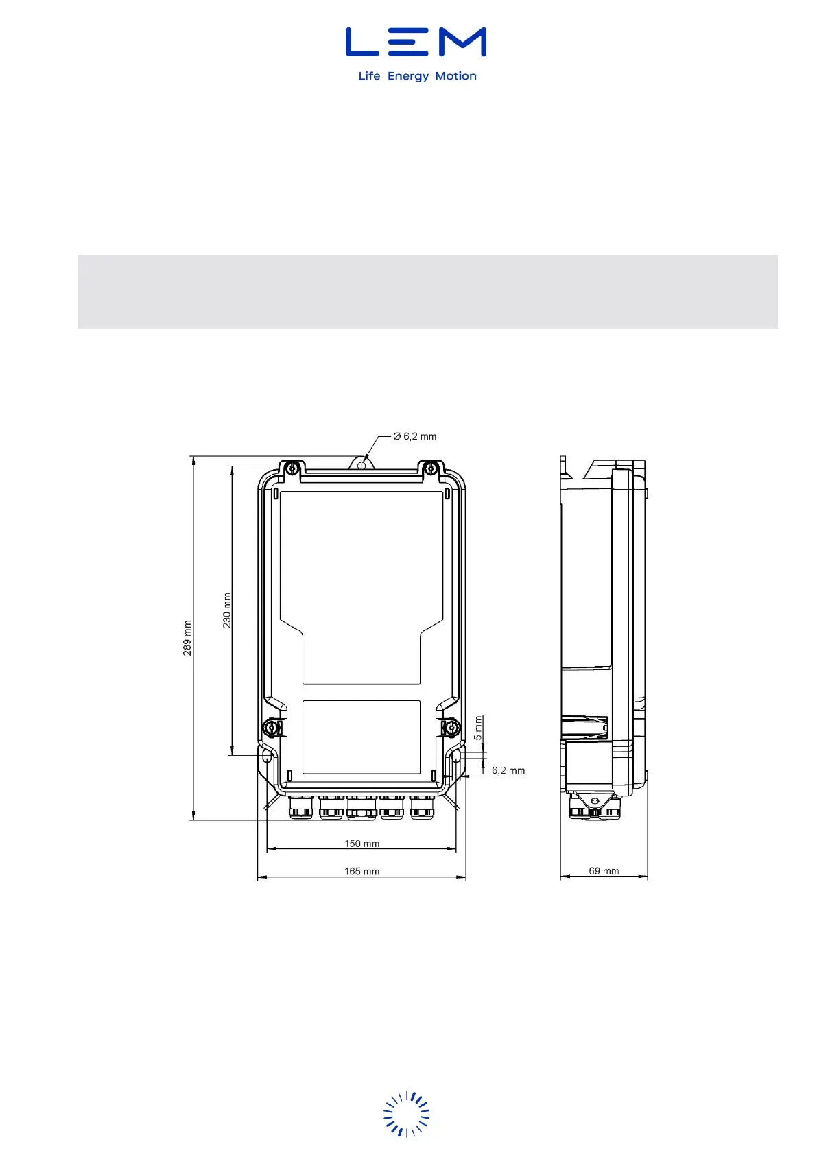 The EM4TII+ device is designed for three-point mounting as per DIN 43857-2. For a detailed view of