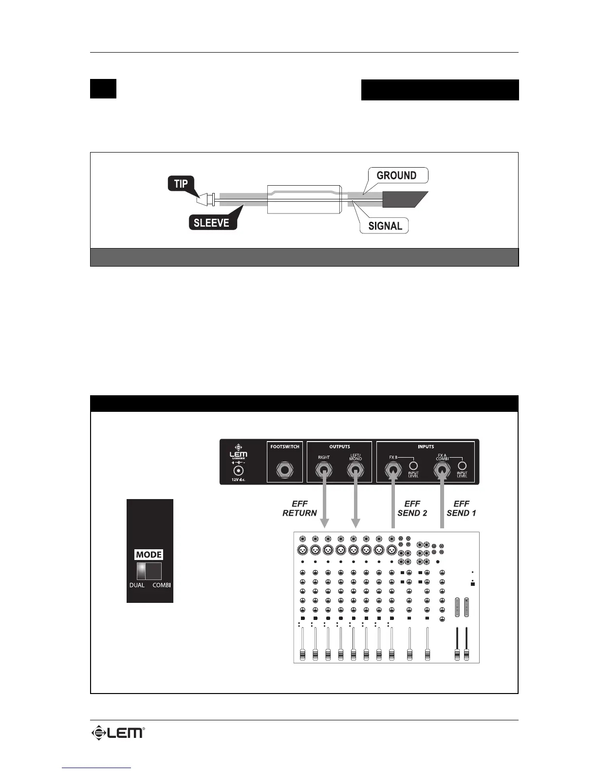 LEM FX22 - LEM FX 22 Connection Examples: Mixer Setup; Mixer Connection: DUAL Mode