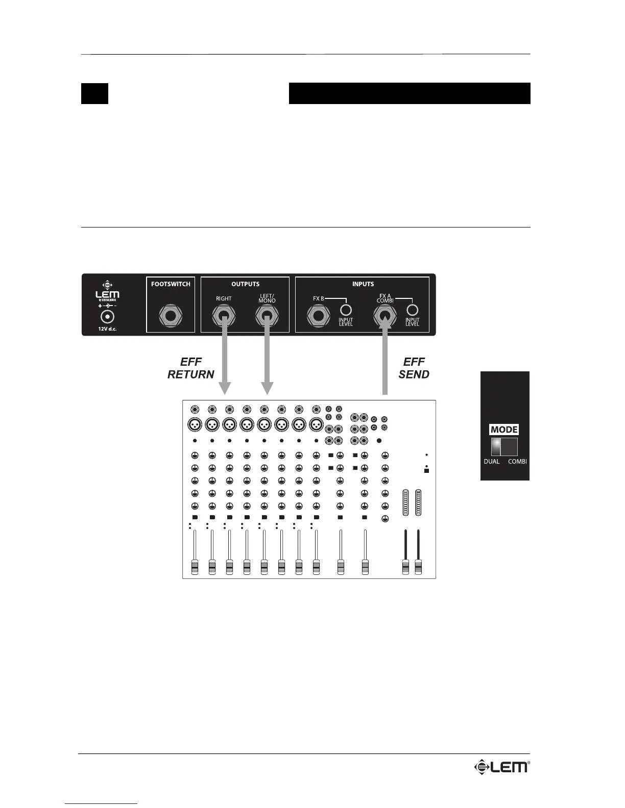 2 - Connect the OUTPUT of the FX 22 to the mixer’s EFF RETURN (or the amplifier).