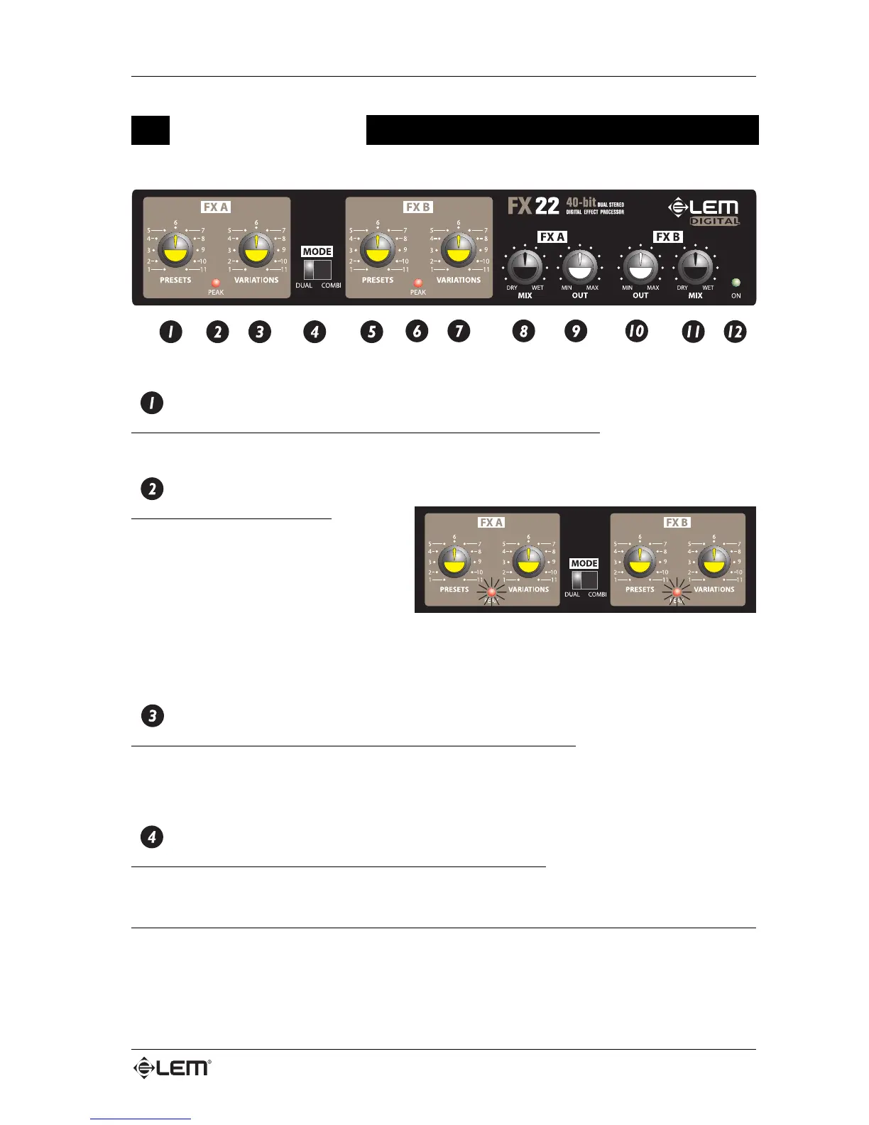 Selector for the FX 22’s two operating modes: DUAL and COMBI.