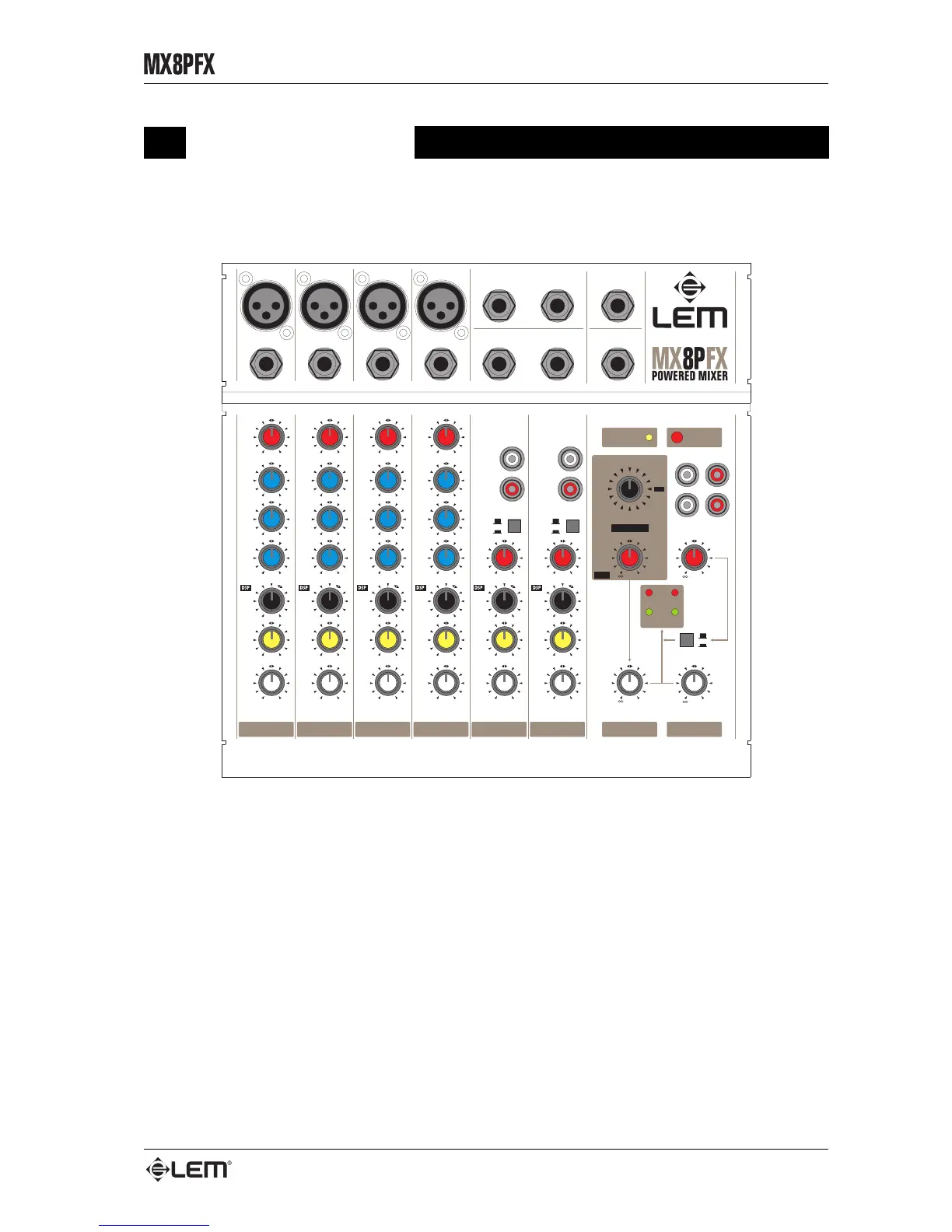 MX8P FX is equipped with 4 MONO MIC channels and 2 STEREO LINE channels