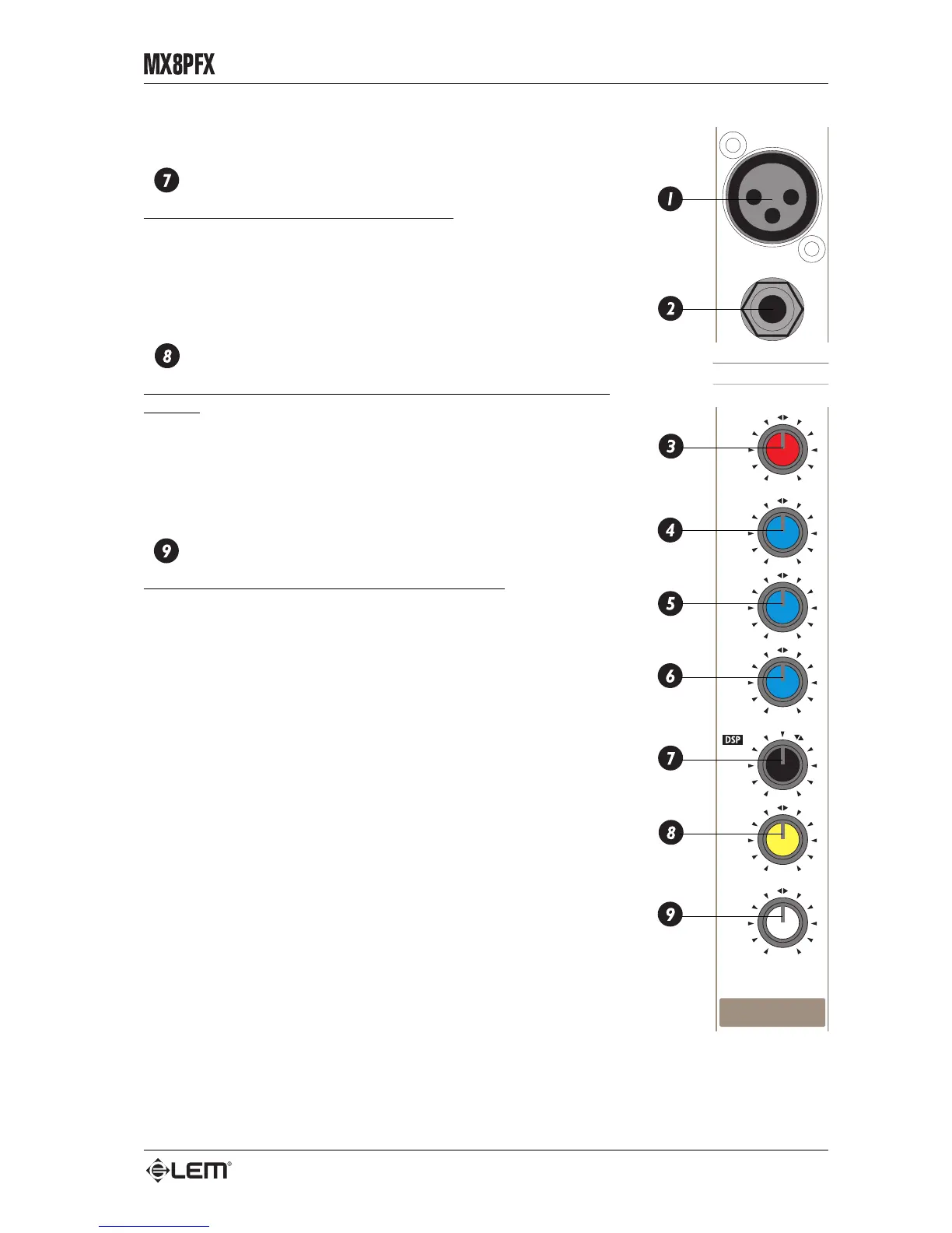 La mandata DSP / AUX è posizionata POST–FADER e, quindi, preleva