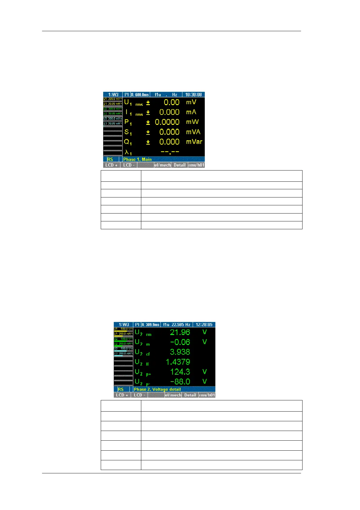 After switching on the power analyzer, the display shows the