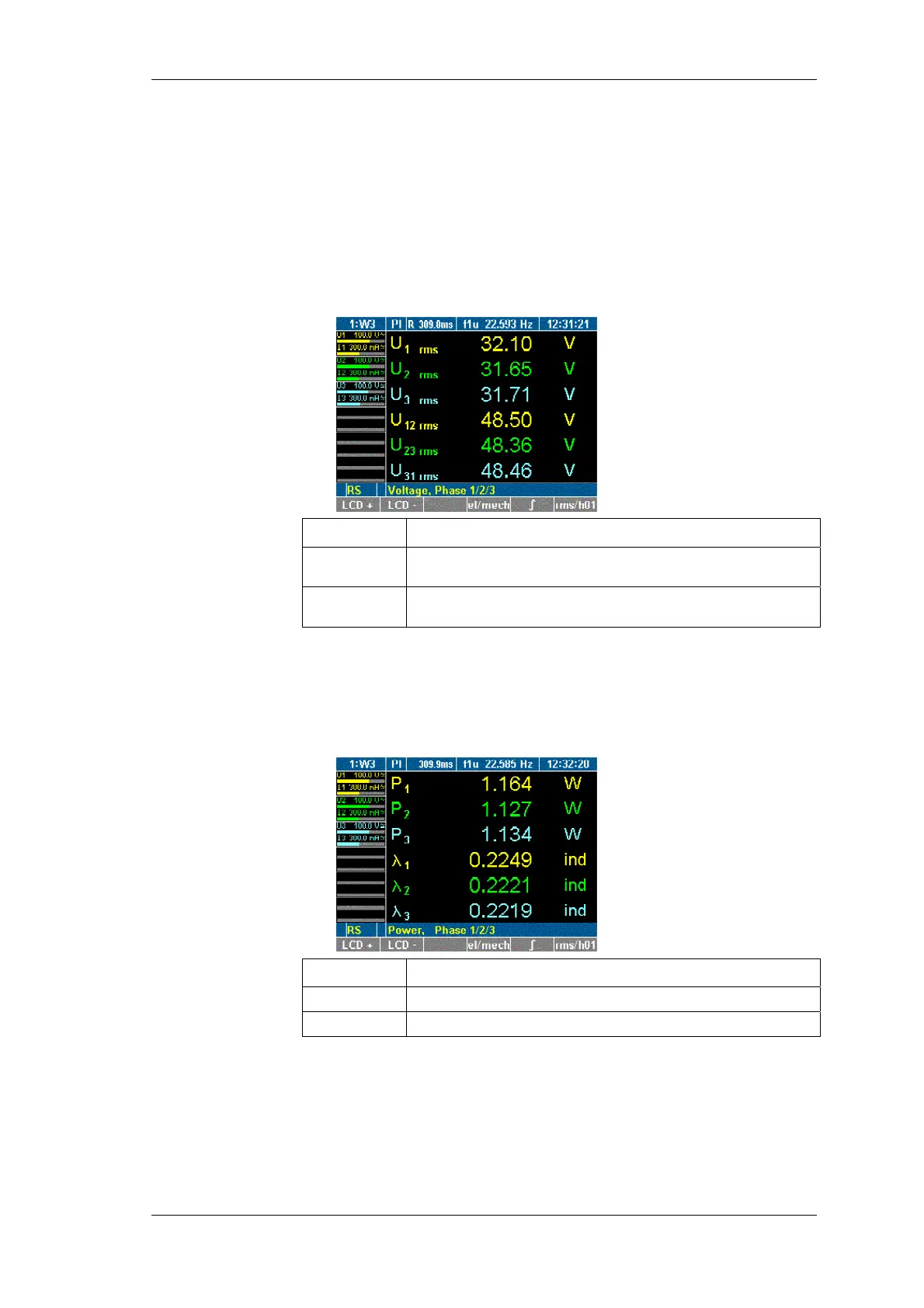 Phase-to-phase voltage at channels 1/2, 2/3 and 3/1