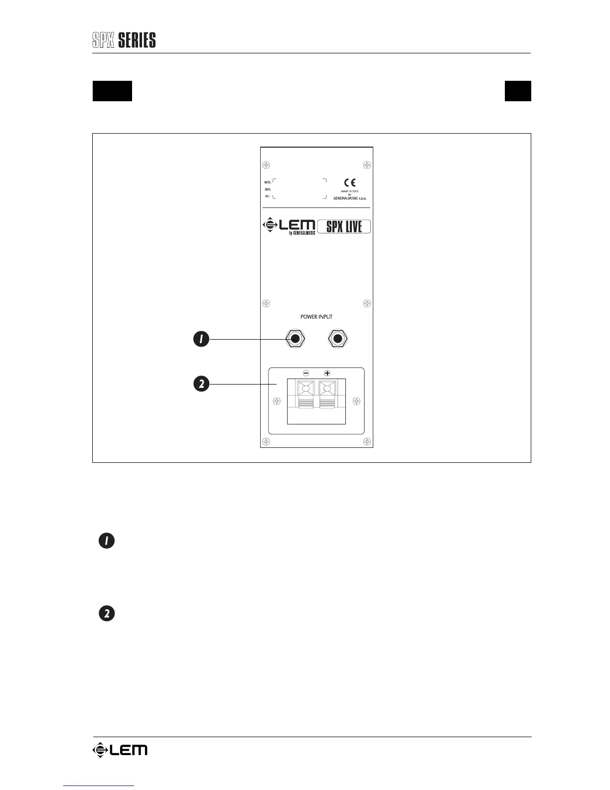 The connection panels of the SPX LIVE & MEDIA models in the passive version have two different types