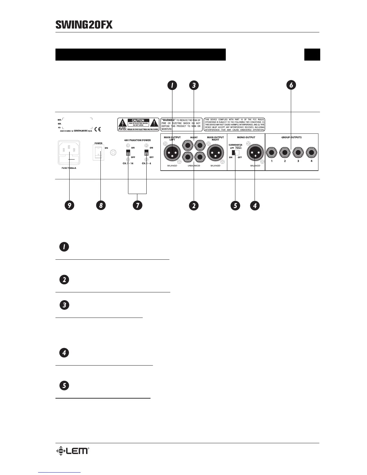 XLR-M balanced connector (+4 dB): sends out the sum of the MIX L&R channels. This output can be