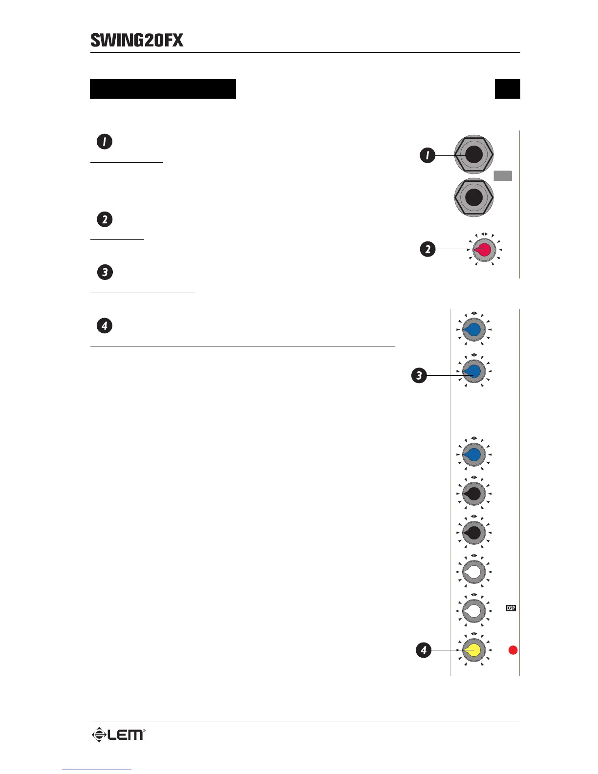 Gain control: regulates the amplification of the signal connected to the L&R