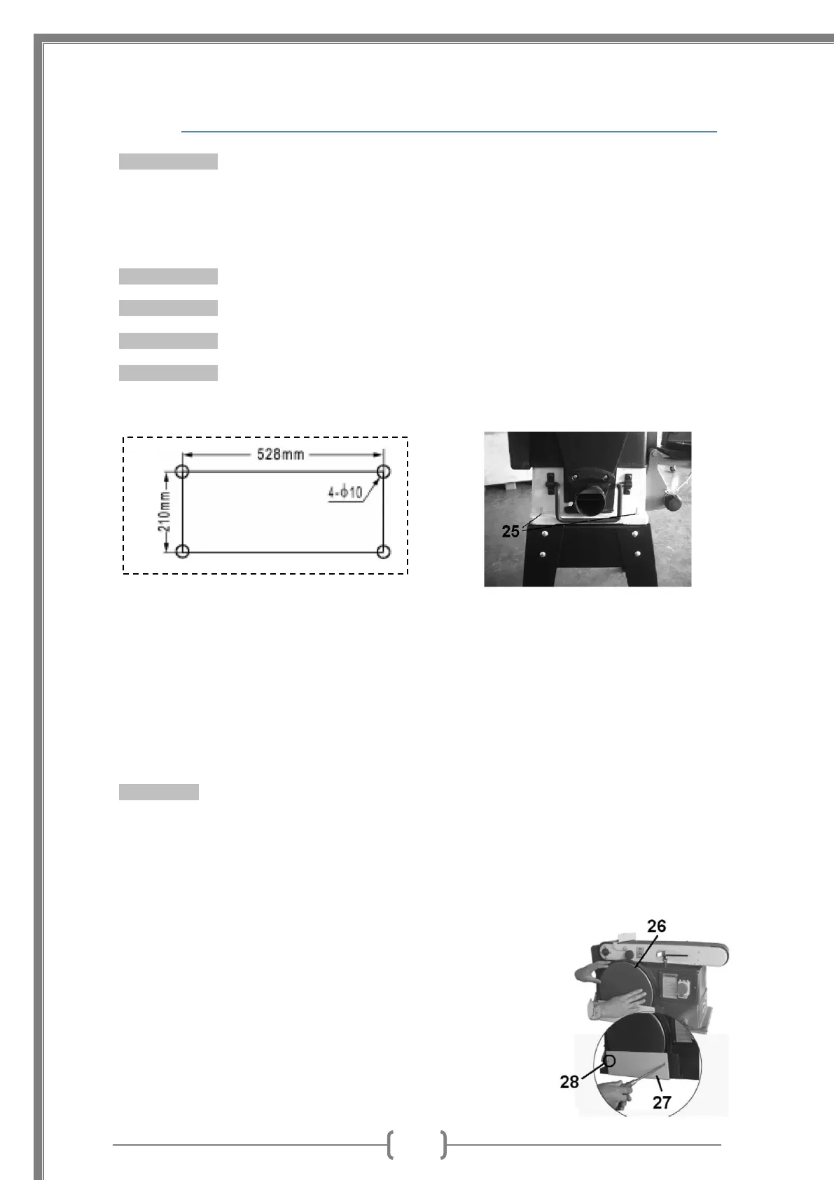 - Fijar la máquina con cuatro orificios a la base (25) con tornillos M8, tuercas y arandelas (no