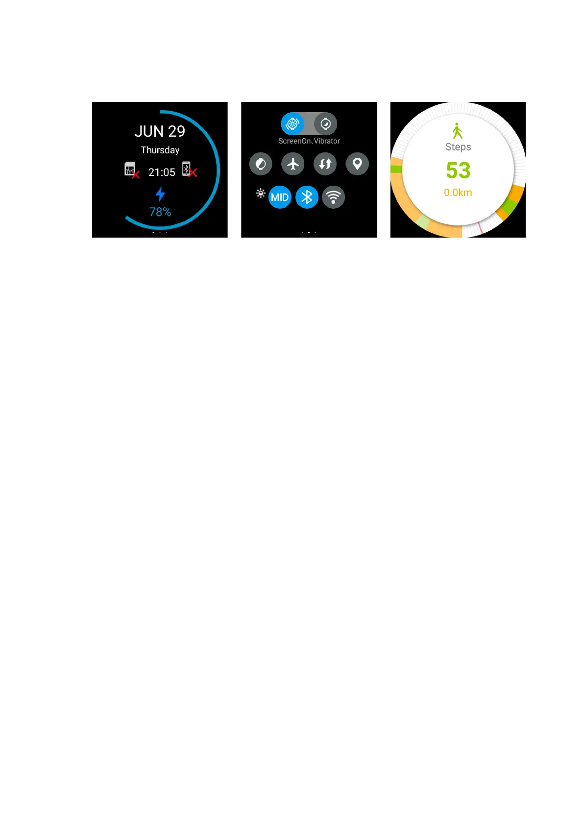 ●!Weather:!At!standby!interface,!slide!up! for!the!weather!interface.!In!the!online!status,!the!device!